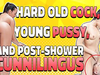 Alter Mann leckt die Pussy einer jungen Brünette