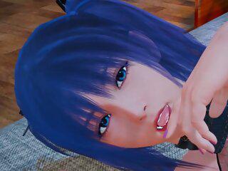 Heiße Japanerin mit blauen Haaren kann große Schwänze nicht widerstehen
